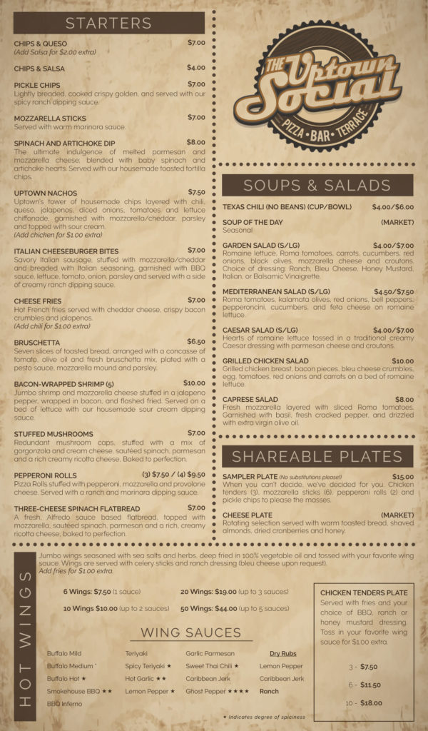 The Uptown Social – Menu ’16
